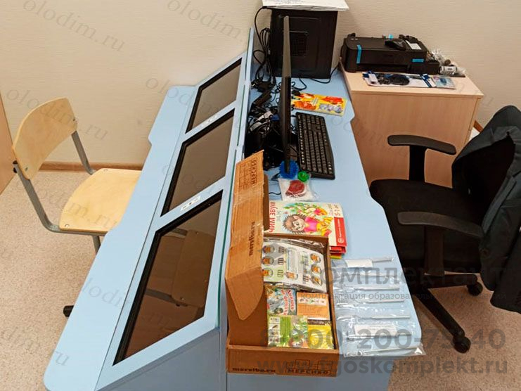 Для стола Logo I - это один или два ребенка и педагог(ширина стола 90см спокойно позволяет посадить за него двоих детей, для каждого ребенка предусмотрена полочка и выходы USB под гарнитуру микрофон и наушники;