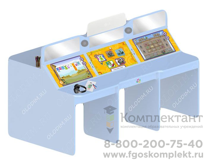 Логопедический стол "Лого" - профессиональное решение для психологов и логопедов, позволяющее на самом высоком уровне проводить как индивидуальную, так групповую работу с детьми с речевыми расстройствами. Работать за ним будет одинаково удобно и педагогу и ребенку. Для детей установлены сенсорные экраны, а для педагога предусмотрен более классический способ управления по средствам клавиатуры и мыши.