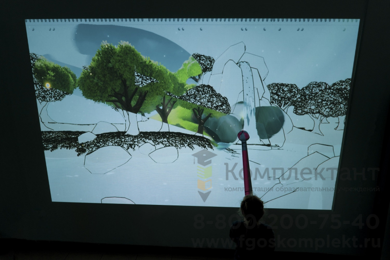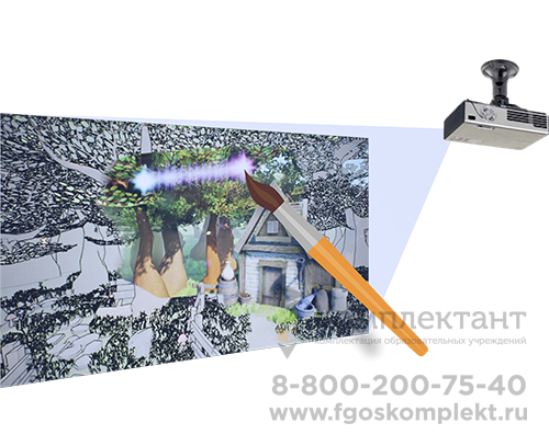 «Мастер Фломастер» - это комплекс из проектора, датчиков и камеры, которые, работая вместе, превращают стену в холст с набросками черно-белых «неживых» рисунков, которые детям предстоит раскрасить.