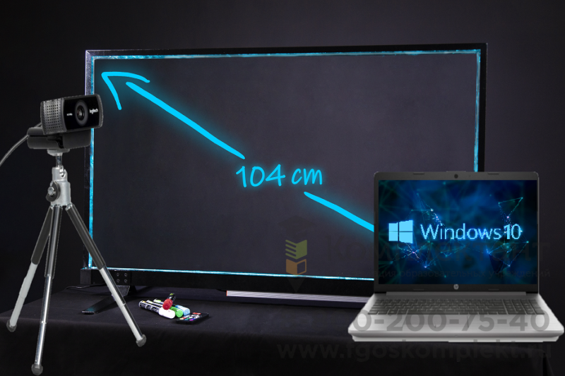 Прозрачная маркерная доска Innovator и ноутбук  подключаются к сети 220 v.  Камера подключена к ноутбуку через USB – кабель. Все очень просто.  При необходимости комплект легко переместить в другую аудиторию.