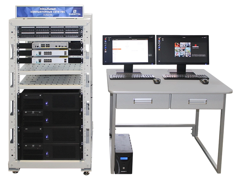 Комплект учебно-лабораторного оборудования "Локальные компьютерные сети на базе оборудования Cisco" предназначен для проведения лабораторно-практических работ по следующим темам: "Администрирование управляемых коммутаторов", "Технологии канального уровня", "Технологии управления качеством сервиса", "Безопасность локальных сетей", "Технологии коммутации третьего уровня". Стенд позволяет получить опыт и навыки в области построения и администрирования коммутируемых локальных сетей семейства Ethernet.