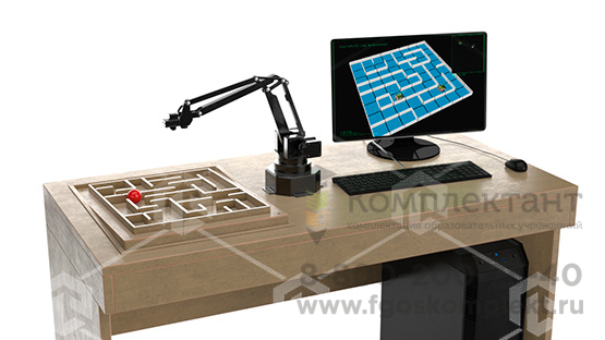 Система состоит из подвижного по двум осям стола с лабиринтом, который управляется посредством сервоприводов, управляемых с помощью персонального компьютера с предустановленным программным обеспечением и библиотеками машинного зрения и управления лабиринтом. Также система содержит внешнюю систему программирования алгоритма поиска пути и управления движением, написанную на языке Python, что позволяет студентам самостоятельно изменять алгоритм управления или написать собственную реализацию управления лабиринтов на основе оптической информации с помощью простейших ИИ алгоритмов. Устройством ввода является видеокамера, позволяющая анализировать видеопоток в реальном времени для применения методов компьютерного зрения, а также для создания базы изображений для развития алгоритмов управления с помощью машинного обучения в дальнейшем.