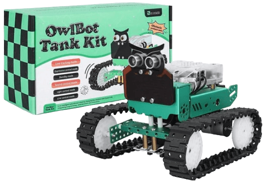 OwlBot Tank Kit With Nano V4 имеет несколько встроенных функций, таких как движение по траектории, заданной линией, детектор препятствий и дистанционное управление, управление светом и звуком. Набор для сборки робота позволяет пользователям познакомиться с графическим программированием. Конструктор идеально подходит для детей и подростков, которые хотят посвятить свою жизнь карьере в сфере высоких технологий.