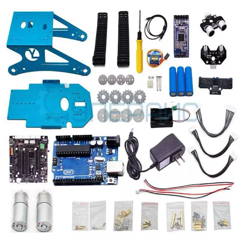 Представляемый Yahboom G1 Tank – это одновременно программируемый робот на гусеницах, набор для развития навыков конструирования и программирования, а также интересный способ провести досуг или даже протестировать собственные разработки. В качестве управляющего контроллера модели используется плата UNO R3, совместимая со средой Arduino, которая сочетает низкий порог вхождения и обширные возможности для творчества. Собирается набор без пайки – при помощи отвёртки и крепежа. В итоге пользователь получает гусеничного робота с датчиками и управлением через мобильное приложение.