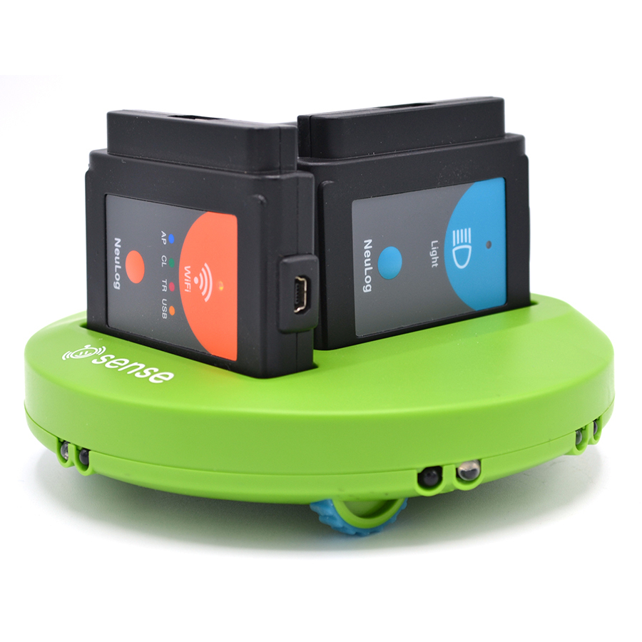 Комплект робототехники SENSE в составе: модуль SENSE, BAT-202, WiFi-203, модули PROLog "Звук" и "Освещенность"