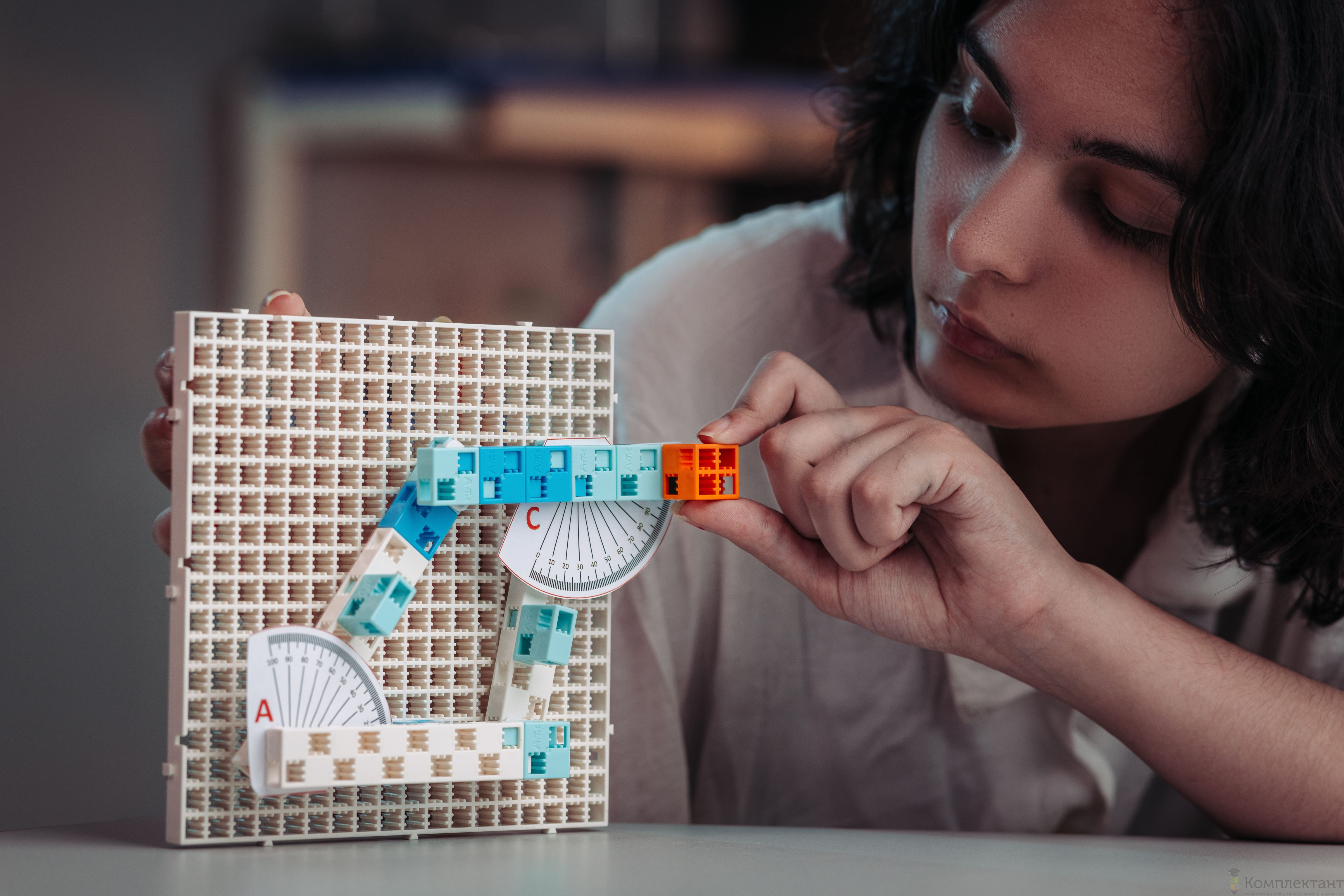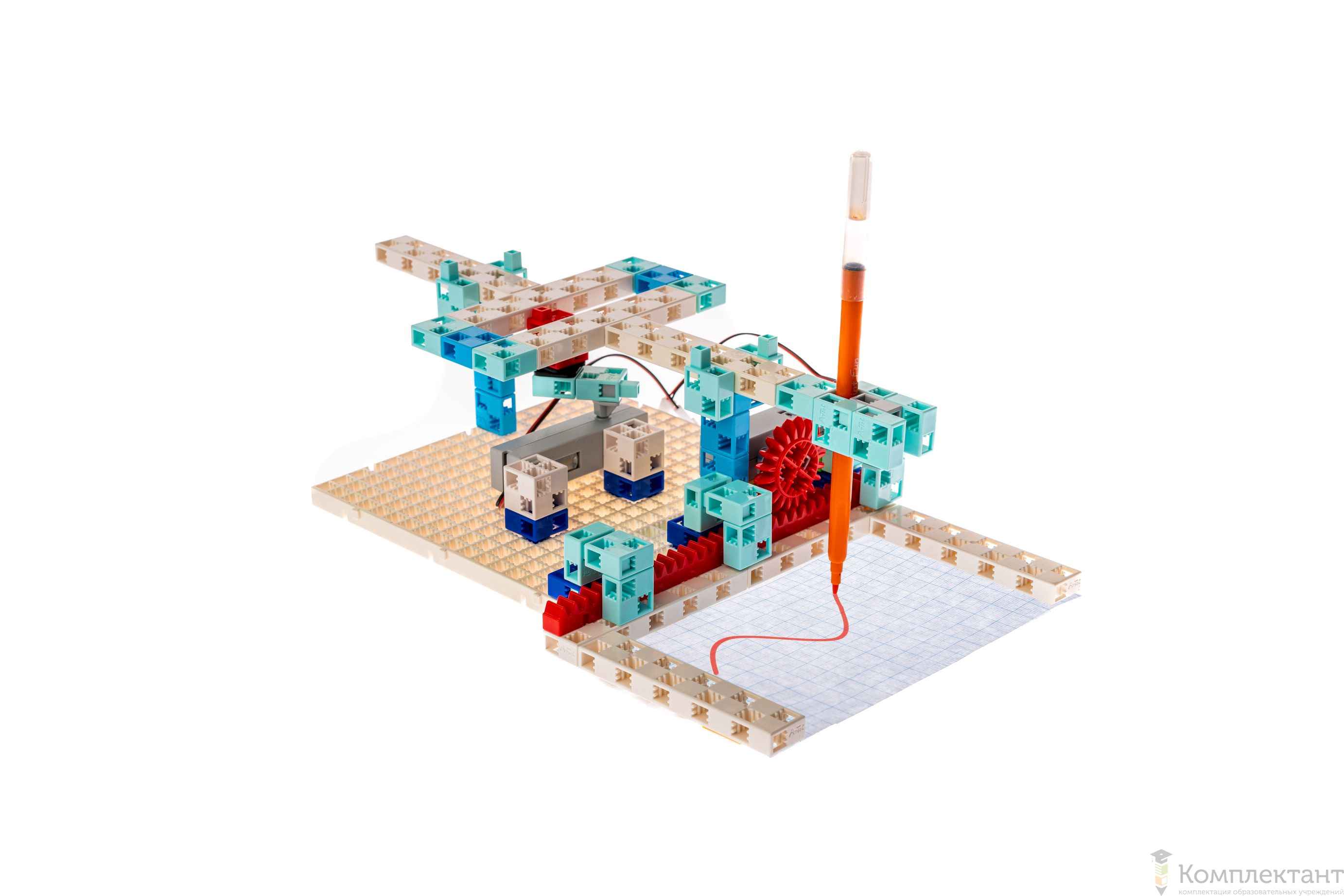— Сборке действующих прототипов распространённых механизмов из универсальных, а не уникально специализированных деталей