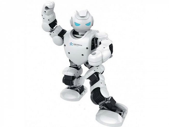 Интерактивный робот с искусственным интеллектом словно сошел с экранов телевизоров, став воплощением задумок авторов фантастических фильмов. Разумная машина наделена искусственным интеллектом, она станет не просто игрушкой, а настоящим членом вашей семьи. Она не только обладает удивительной технологией взаимодействия с человеком, но и способна обучаться. Этот робот, конечно, не приготовит кофе и не помоет посуду в доме, но станет забавным другом, с которым каждое занятие станет увлекательным развлечением. Гуманоид не только обладает привлекательной внешностью, но и находит общий язык как с детьми, так и со взрослыми. Программное обеспечение позволяет легко изменять его поведение, а при скачивании дополнений с официального сайта робота можно усовершенствовать, научив его новым движением или речи. Умная машина с внешностью футуристических роботов превосходно имитирует движения человека. Это достигается благодаря 16 запатентованным сервоприводам, каждый из которых используется в роли сустава и отвечает за движение каждой конечности. Так, робот может свободно жестикулировать, ходить, танцевать, играть в футбол и демонстрировать боевые стойки и даже выполнять акробатические трюки. Для изготовления интерактивного робота были использованы только высококачественные материалы - ABS-пластик и алюминий. Конструкция собрана таким образом, что система полностью защищена от замыканий. Все соединения скрывает прочный корпус, поэтому во время эксплуатации исключается вероятность появления царапин и удара током. Кроме того, предустановленные световые эффекты делают робота более ярким и дарят множество положительных эмоций взрослым и детям. Задавать команды разумной машине можно сидя на диване и держа в руках смартфон или планшет. Bluetooth-соединение дает возможность удобно управлять гуманоидом на расстоянии до 10 метров. Модель совместима с устройствами, функционирующими на операционных системах с Android, IOS, Windows и Mac OS. Установленная на вашем гаджете программа имеет интуитивно понятный интерфейс, который достаточно легко освоить. Кроме того, бесплатное программное обеспечение регулярно обновляется. Что дает возможность пользоваться самой последней версией. Загрузив музыку на внутреннюю память устройства и обучив робота новым движениям, он произведет незабываемое впечатление на любой вечеринке. С тщательно проработанной системой визуального программирования вы почувствуете себя настоящим гением создавать новые движения, изменять поведение и много другое. Благодаря установленной энергоемкой батарее, робот Ubtech Alpha 1PRO будет удивлять своими интерактивными способностями целый час без подзарядки. Восполнить ресурс батареи можно за минимальный промежуток времени, подключив умную машину к сети. Робот Ubtech Alpha 1PRO - воплотившаяся в реальность фантастика