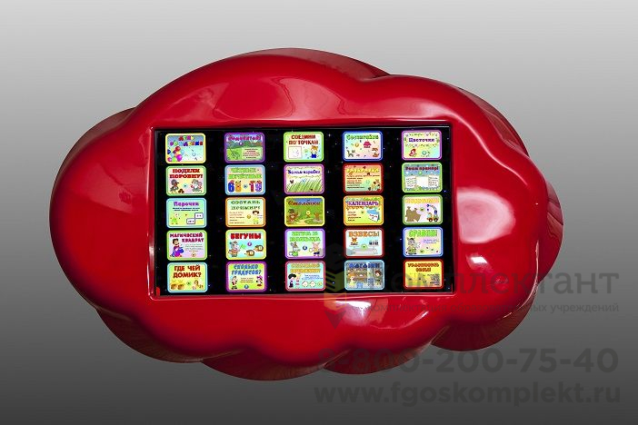 Интерактивная панель представляет собой настенный многофункциональный сенсорный комплекс, декоративный корпус которого выполнен в виде облака.