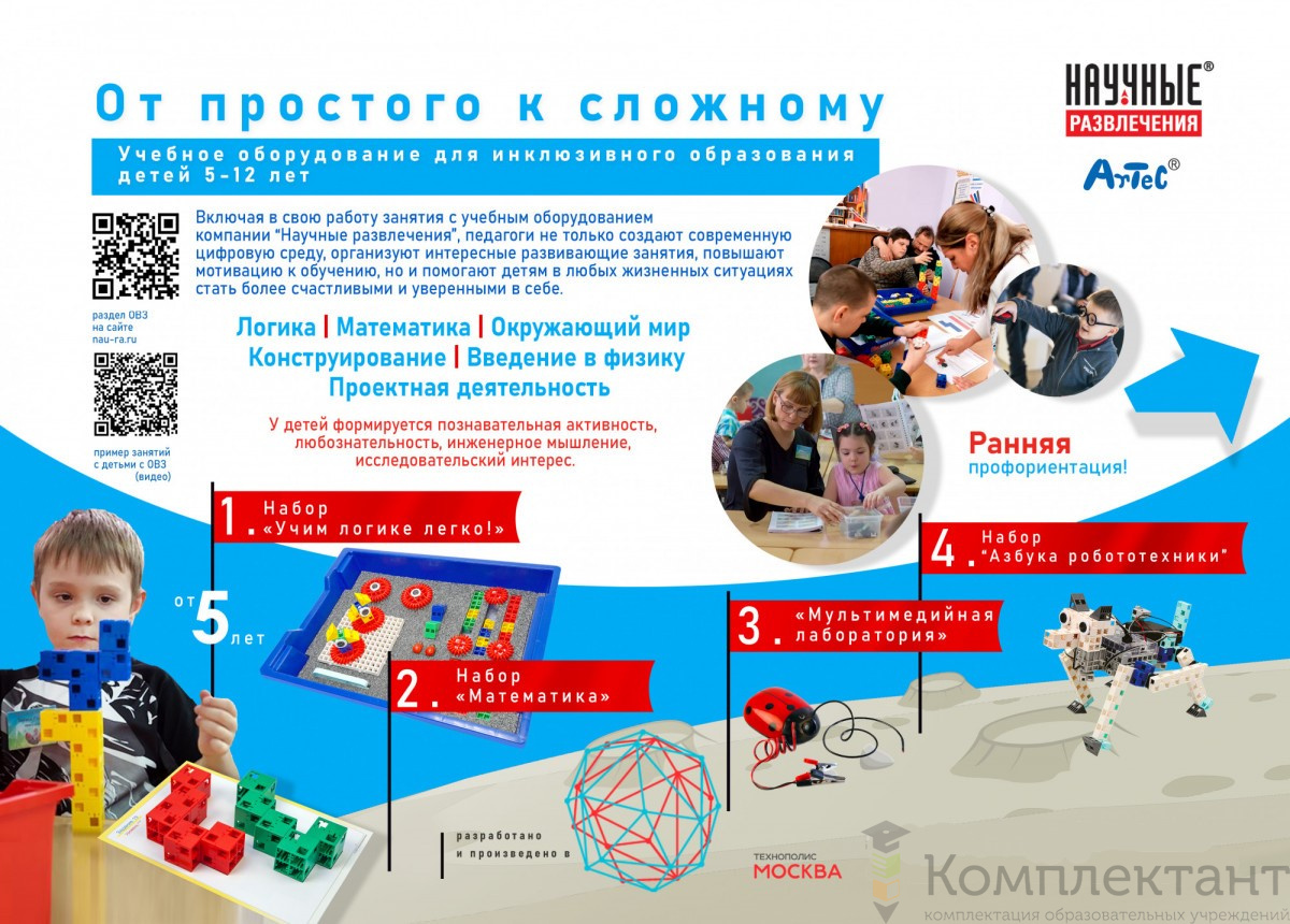 Для перехода на другие ступени развития «от простого к сложному» вы можете ознакомиться с учебным оборудованием для инклюзивного образования детей 5-12 лет: