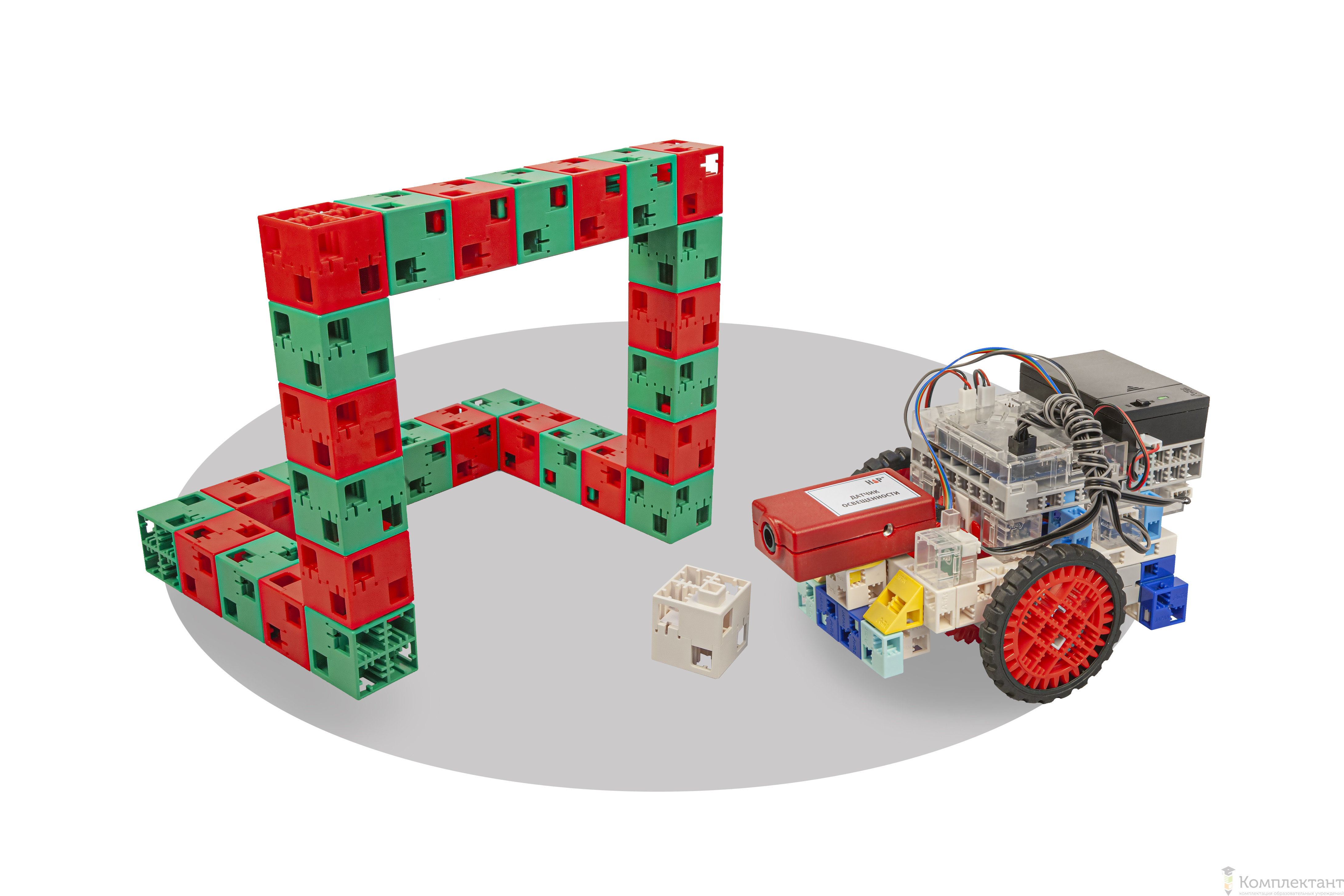 Набор позволяет использовать модель робота на базе Arduino–совместимого контроллера, а также собрать полигон из блоков конструктора и электронных компонентов.
