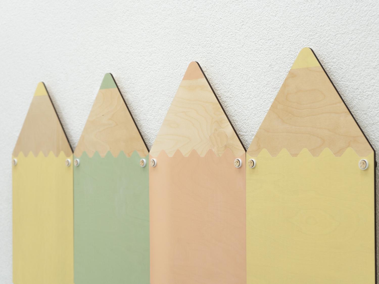Чтобы защитить покрытие стен от загрязнений и декорировать пространство, компания «АЛМА» предлагает настенные панели «Карандаши», выполненные из берёзовой фанеры и покрытые водостойким лаком. Стойкая UF-печать придаёт «Карандашам» приятные пастельные цвета, которые создают уютное образовательное пространство для дошколят в ДОУ.