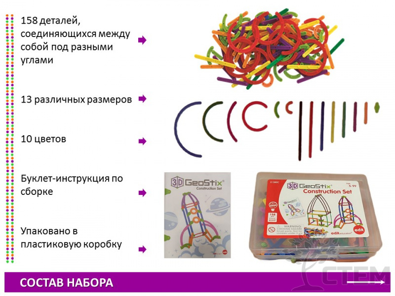 Палочки счетные Геостикс. 3D конструктор. (158 деталей)