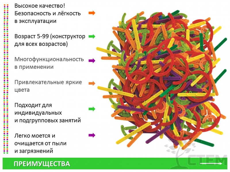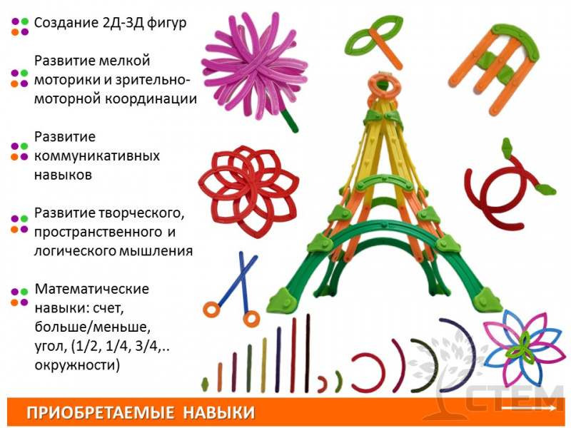 Набор из гибких палочек различной длины, соединяющихся между собой под разными углами, позволит детям развивать творческий потенциал.