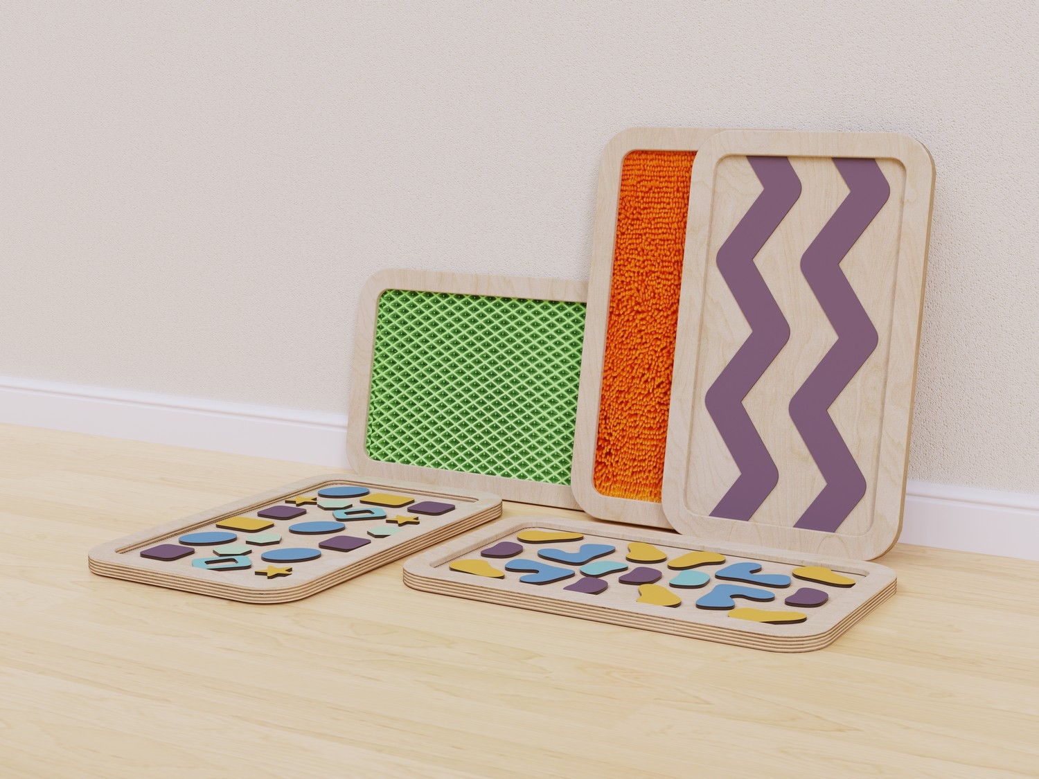 Набор состоит из пяти панелей с тактильными поверхностями разного типа: