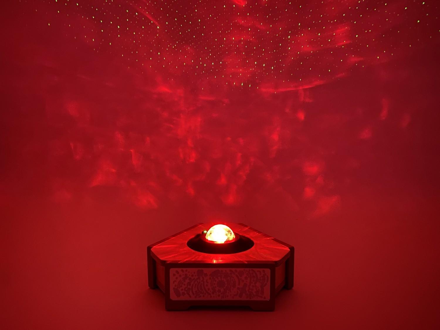 У проектора есть 10 режимов космических спецэффектов, которые можно переключать с пульта дистанционного управления. Яркость свечения настраивается в трёх разных режимах. Есть таймер автоматического отключения.