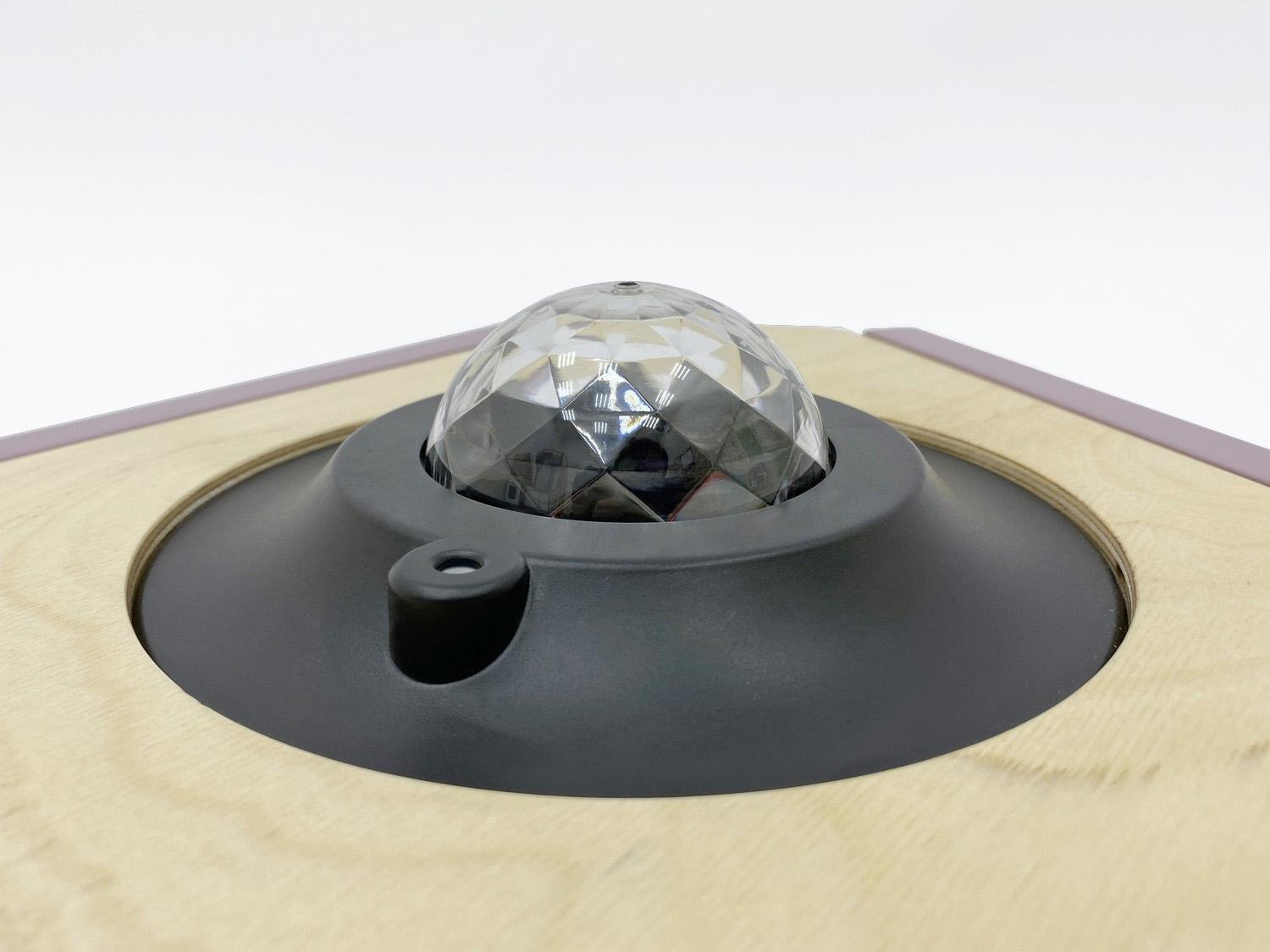 Светильник может вращаться вокруг своей оси, проецируя на стены и потолок волшебный свет звёзд. А если включить музыкальное сопровождение, то завораживающий и успокаивающий ребёнка эффект многократно усилится. Музыку можно добавлять из ваших плейлистов на телефоне или компьютере.