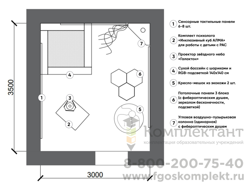 Комплект оборудования для сенсорной комнаты 10.5 м²