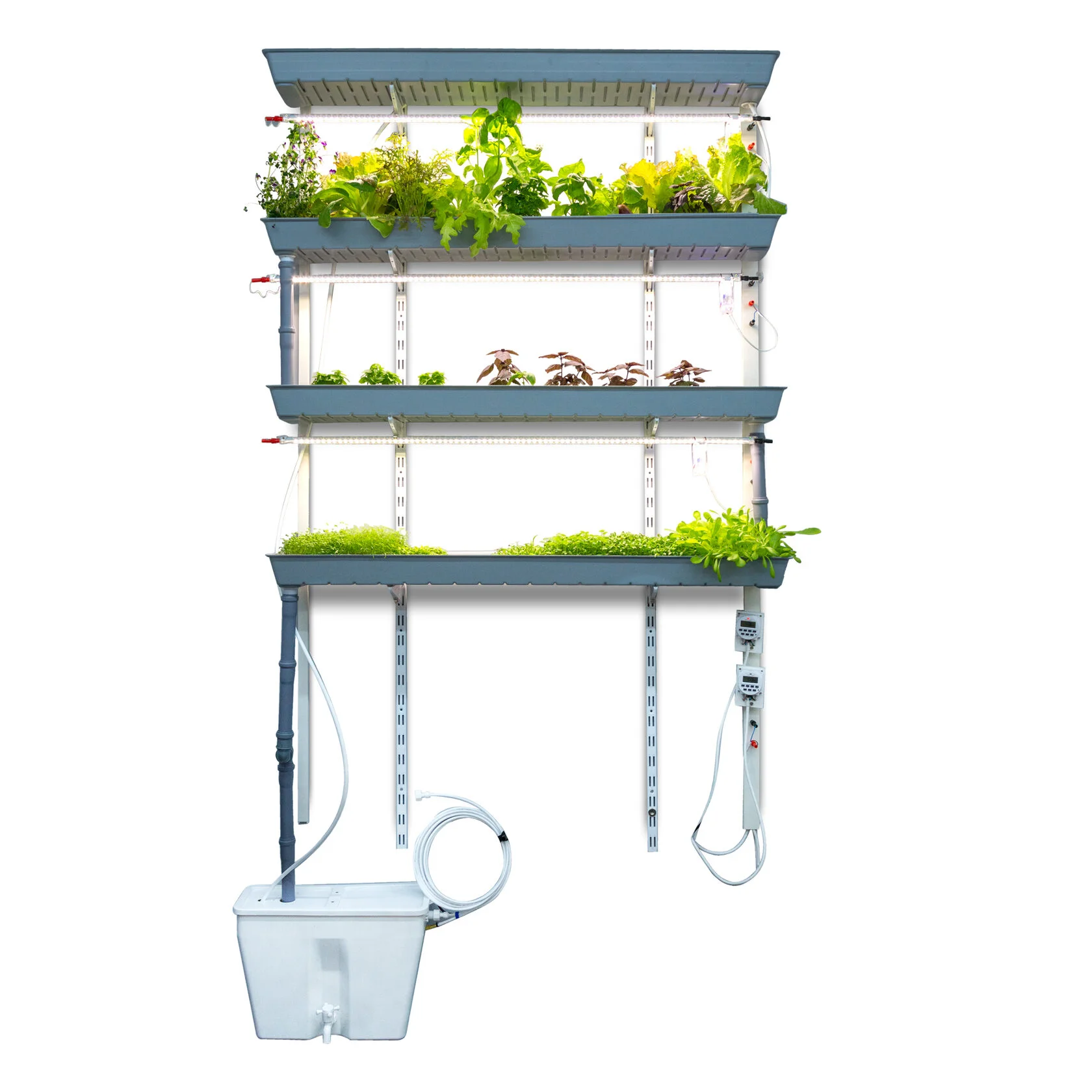 • 3 Энергоэффективных фито-светильников длиной 117 см (156 полно спектральных светодиодов и 30 с длиной волны 625 Нм–красный цвет) 25 Вт, 12 В. Система лёгкого, без использования инструментов, изменения количества, высоты подвеса и направления светового потока на каждом этаже