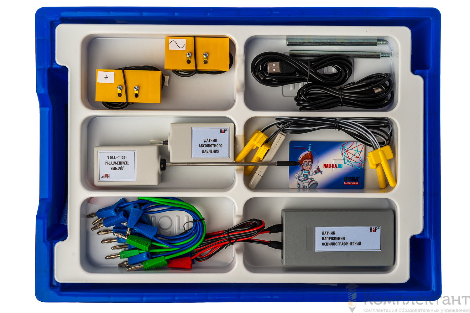 Все оборудование цифровой лаборатории (кроме скамьи лабораторной) укомплектовано в пластиковую систему хранения, который закрывается прозрачной пластиковой крышкой на защелках для обеспечения наблюдения за содержимым. Комплект оборудования и датчики в системе хранения располагаются на ложементе в индивидуальных ячейках.