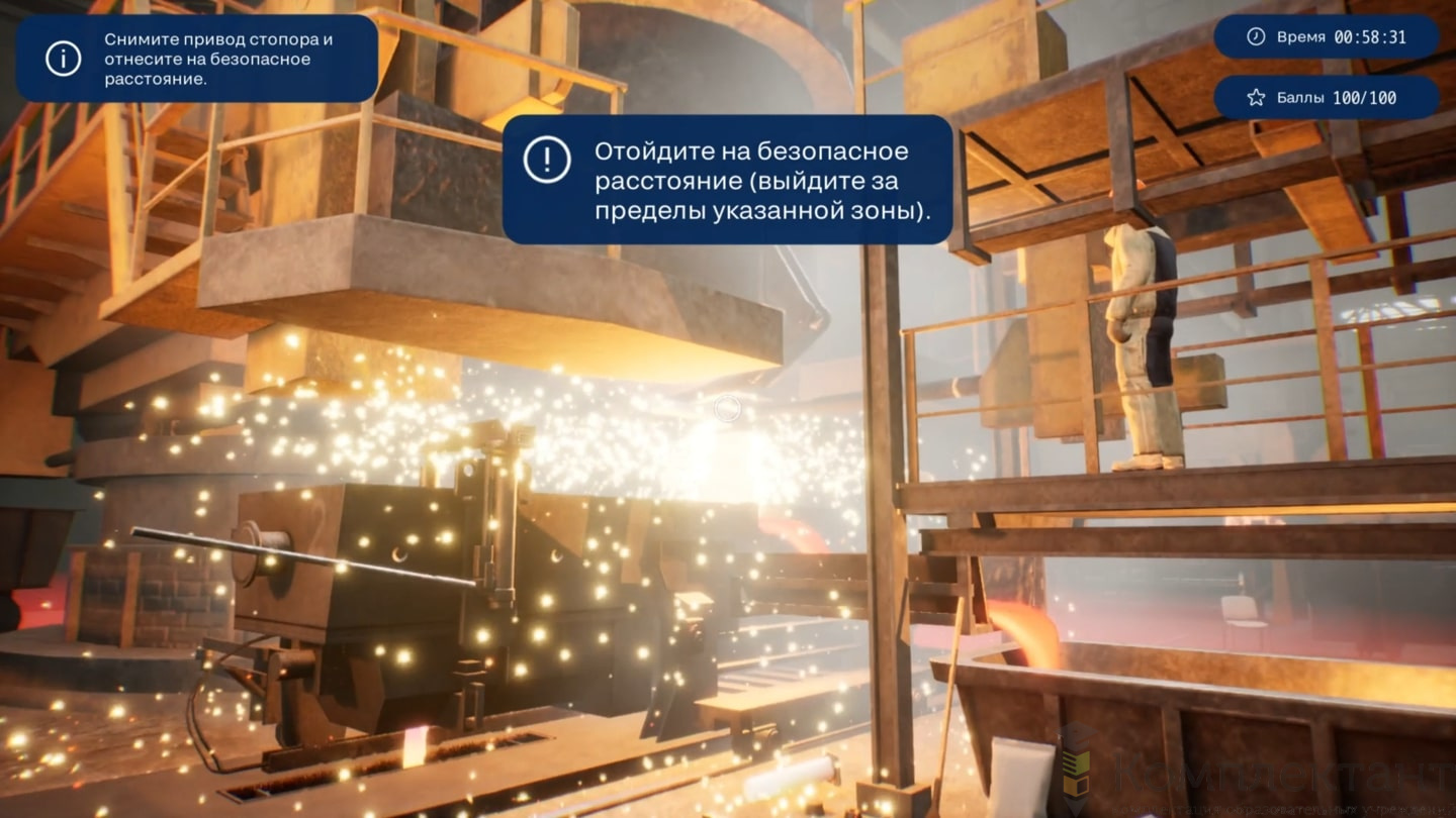 Тренажер «Некрытие шибера стальковша» воссоздает ситуацию, в которой пользователь отрабатывает действия при аварийных ситуациях в работе с жидким металлом, а именно контролирует процесс разливки стали и при аварийных ситуациях переключает систему в ручной режим, устраняет негативные последствия аварии и стабилизирует ситуацию. Доступен VR и ПК режим.