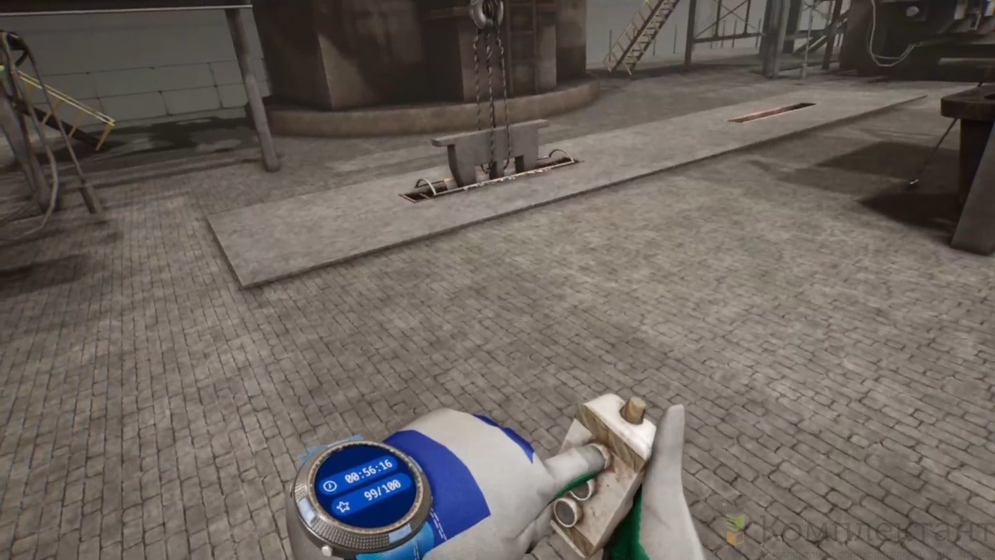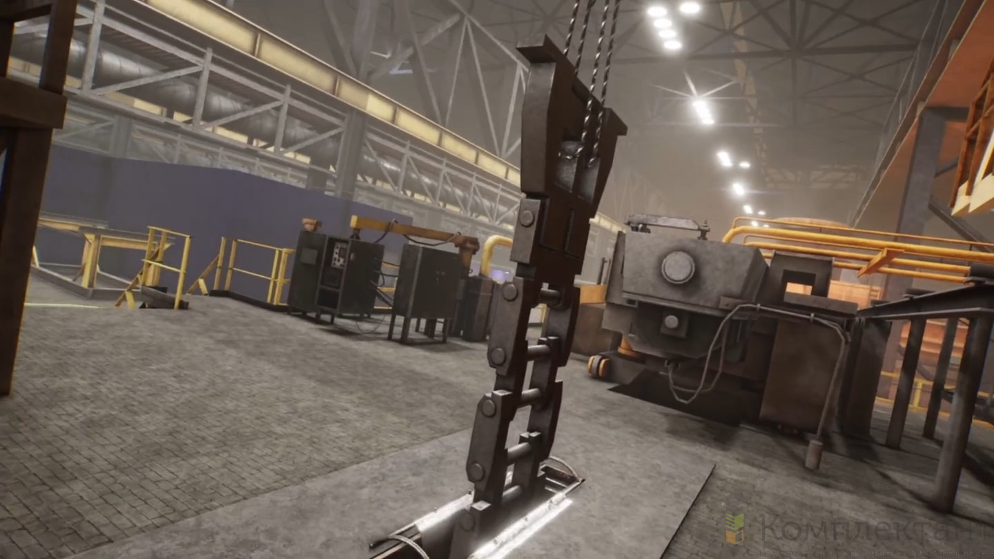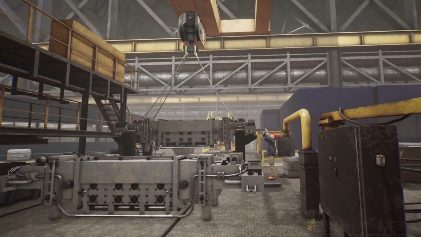 Тренажер Оператор машины непрерывного литья заготовок. Установка непрерывной разливки стали предназначен для повышения уровня профессиональных навыков управления технологическим процессом с одновременной теоретической и практической подготовкой на конкретном рабочем месте операторов МНЛЗ (машины непрерывного литья заготовок). Отработка следующих операций: подача сигнала машинисту крана, перевозка затравки при помощи ГПМ, заведение затравки в кристаллизатор, замена секций. Доступны VR и ПК режимы.