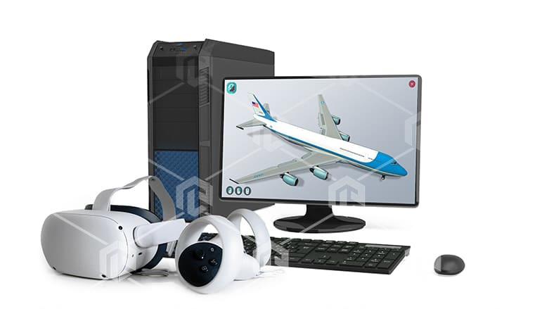 Виртуальный учебный комплекс предназначен для изучения авиационной техники с помощью трехмерной графики и анимации, а также комплектов виртуальной реальности.